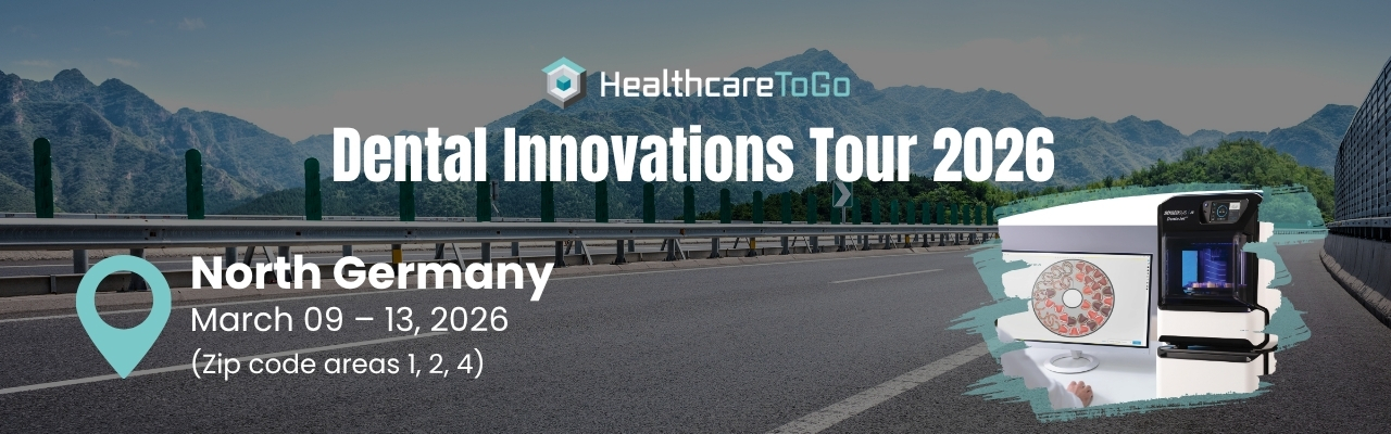 Following the tremendous success of our previous Dental Innovations Tours, we are delighted to announce the HealthcareToGo Dental Innovations Tour 2026 – North Germany! From March 9 to 13, 2026, we will be traveling to the 1, 2, and 4 zip code areas to visit you directly in your laboratory or practice.