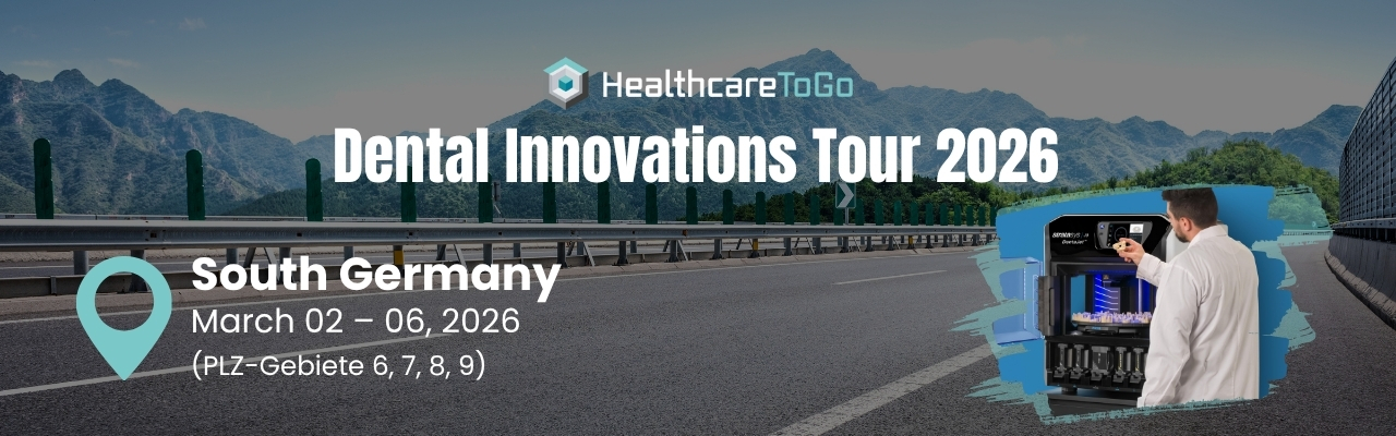 Following the great success of our previous Dental Innovations Tours, we are delighted to announce the HealthcareToGo Dental Innovations Tour 2026 – South Germany! From 2 to 6 March 2026, we will be travelling to postcode areas 6, 7, 8 and 9 to visit you directly in your laboratory or practice.