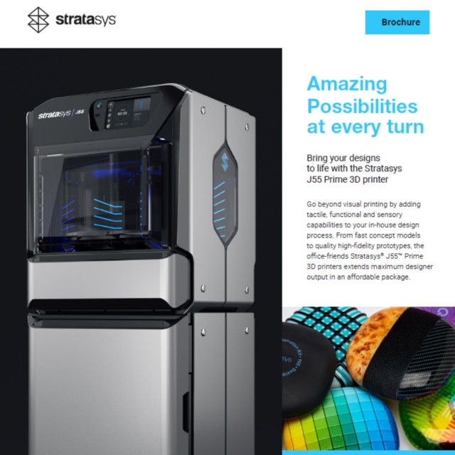 The Stratasys® J55™ Prime 3D printer enhances its offering by adding numerous sensory and functional features, while maintaining the high quality of Stratasys® PolyJet™ technology in a small, office-friendly design.