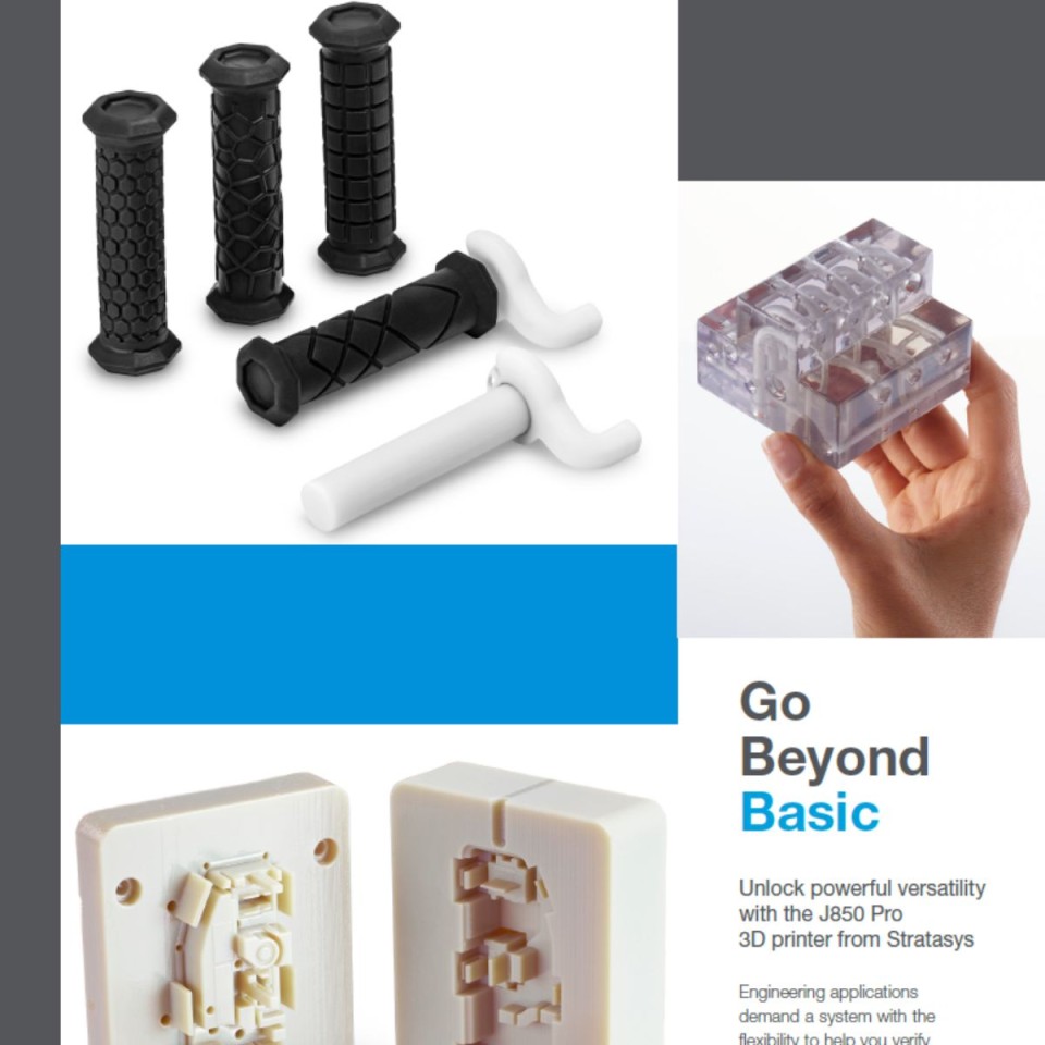 The J850™ Pro can be used for engineering applications such as fit and form, functional testing, see through parts, labelling, textured parts, shock absorption and even for over mouldings.