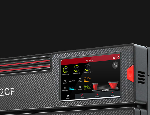 Der Raise3D E2CF Drucker kann leicht in das 3D-Druck-Software-Ökosystem von Raise3D verbunden werden, welches die Slicing-Software ideaMaker und die Management-Software RaiseCloud umfasst.