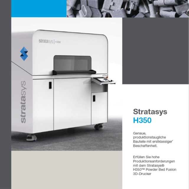 Der pulverbasierte 3D-Drucker H350™ von Stratasys® ist eine Lösung für die Additive Fertigung mit intelligenten Steuerungsmöglichkeiten, die es Kunden ermöglichen, die Konsistenz, Genauigkeit und wettbewerbsfähigen Kosten zu liefern, die verschiedene Märkte verlangen.