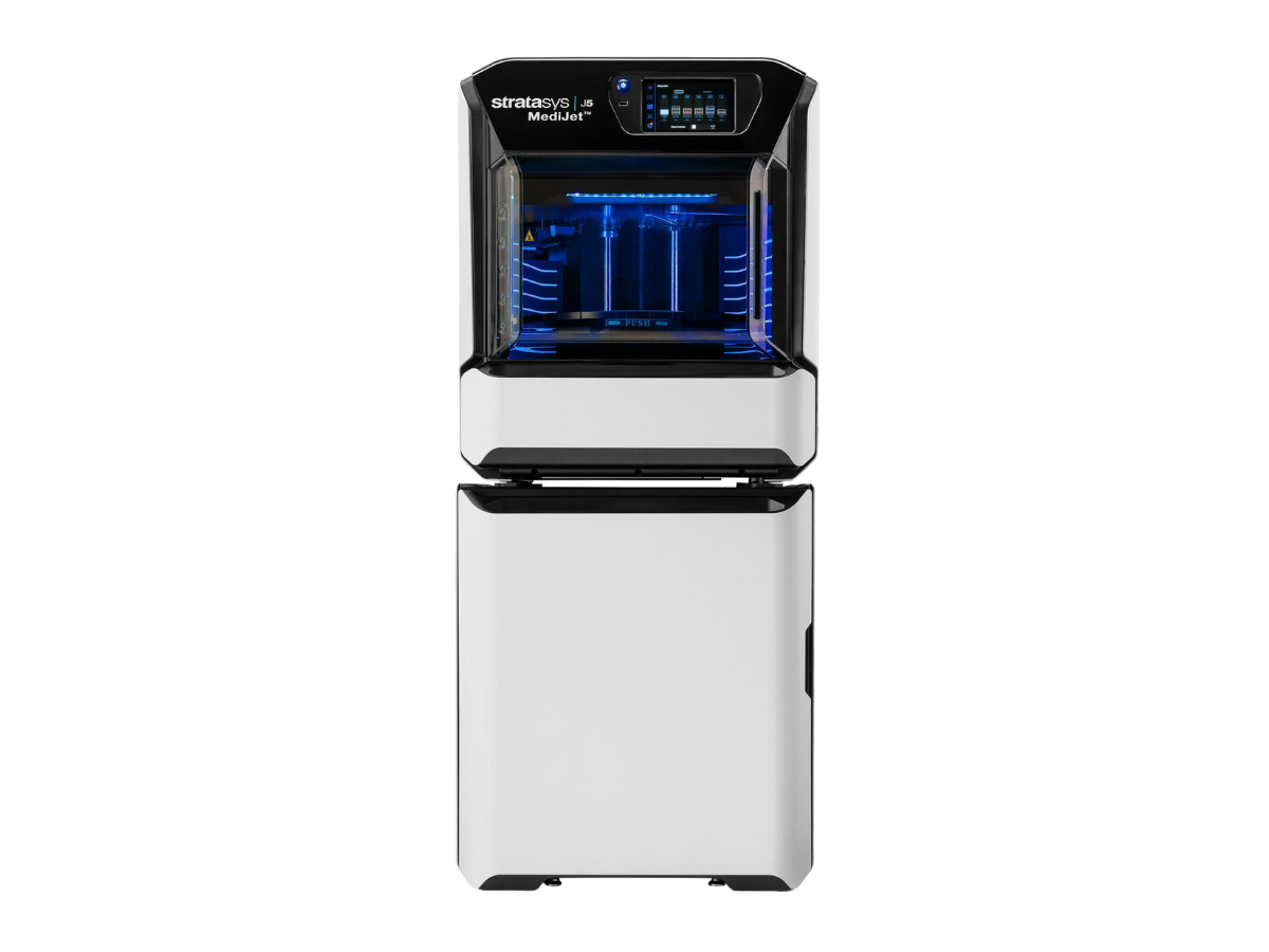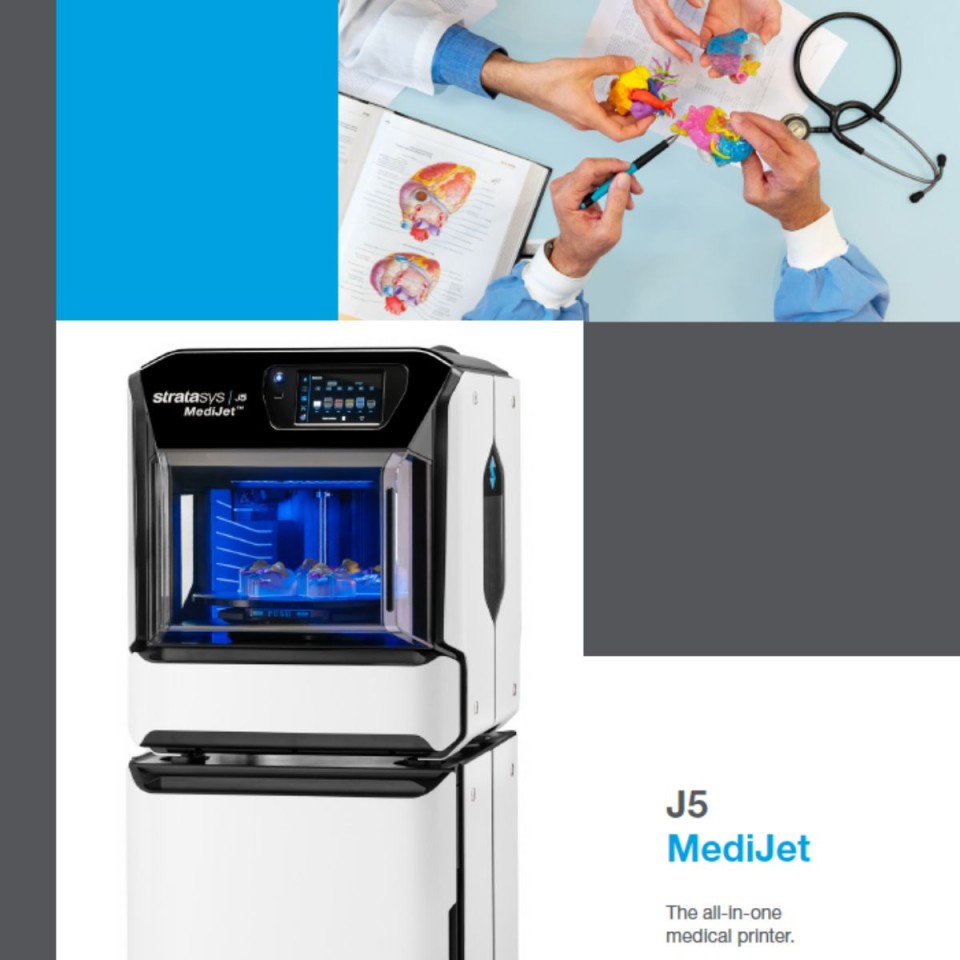 Der Stratasys® J5 MediJet® ist ein leistungsstarker 3D-Drucker, der mit einer Vielzahl von Materialien und Farben anatomische Modelle herstellen kann, die patientenspezifisch und unglaublich anschaulich sind. Die biomechanischen Eigenschaften des ursprünglichen Gewebes und Knochens können durch die äußerst realistischen Modelle, die dieser Drucker herstellt, genau nachgeahmt werden, was ihn zu einem wertvollen Werkzeug für die präoperative Planung, die medizinische Ausbildung und die Entwicklung von Medizinprodukten macht.