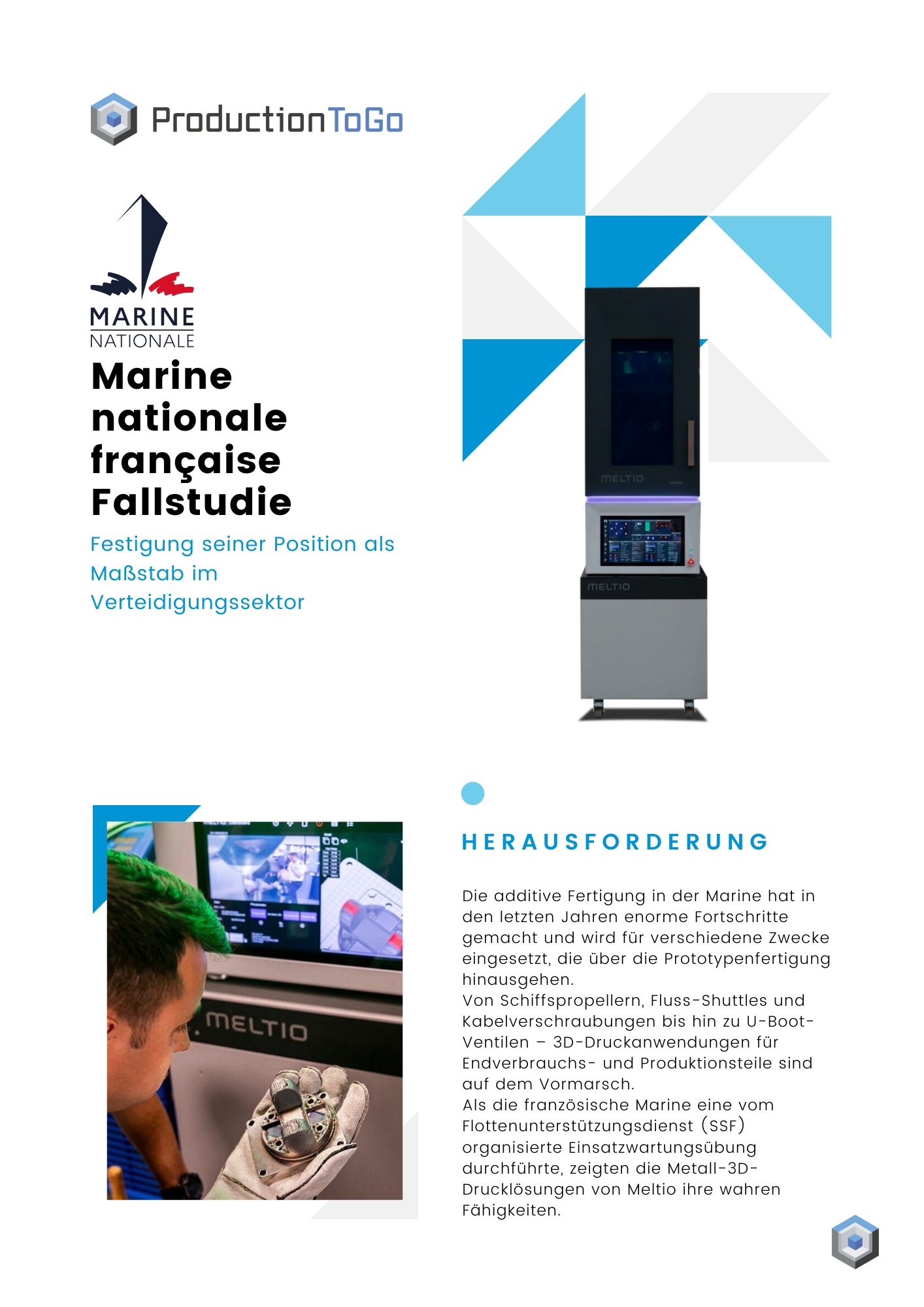 Die additive Fertigung in der Marine hat in den letzten Jahren enorme Fortschritte gemacht und wird für verschiedene Zwecke eingesetzt, die über die Prototypenfertigung hinausgehen. Von Schiffspropellern, Fluss-Shuttles und Kabelverschraubungen bis hin zu U-Boot-Ventilen – 3D-Druckanwendungen für Endverbrauchs- und Produktionsteile sind auf dem Vormarsch. Als die französische Marine eine vom Flottenunterstützungsdienst (SSF) organisierte Einsatzwartungsübung durchführte, zeigten die Metall-3D-Drucklösungen von Meltio ihre wahren Fähigkeiten. Entdecken Sie in diesem Anwendungsfall, wie die Meltio-Lösungen diese Fähigkeiten unter Beweis stellen konnten.