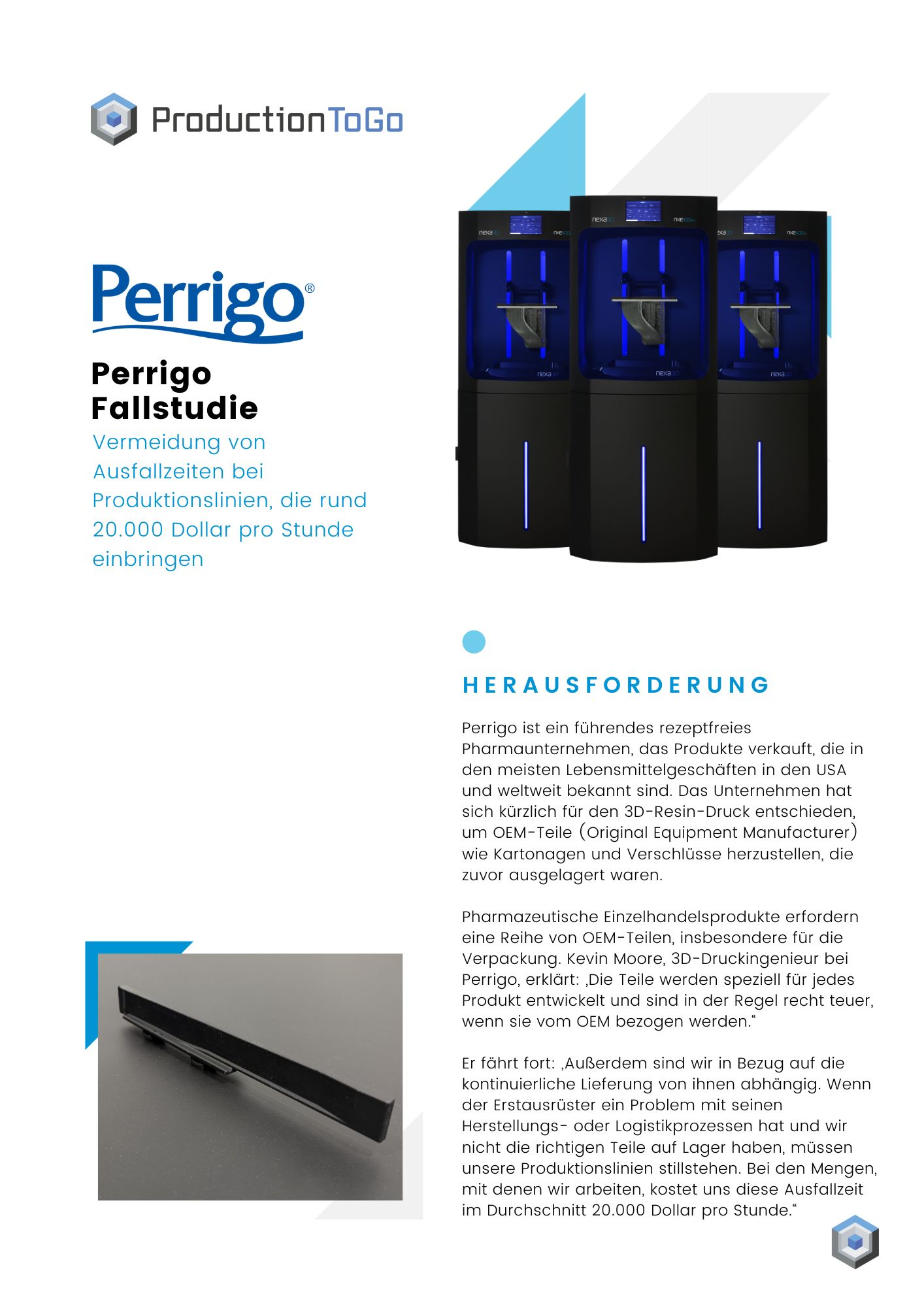 Perrigo ist ein führendes rezeptfreies Pharmaunternehmen, das Produkte verkauft, die in den meisten Lebensmittelgeschäften in den USA und weltweit bekannt sind. Das Unternehmen hat sich kürzlich für den 3D-Resin-Druck entschieden, um OEM-Teile (Original Equipment Manufacturer) wie Kartonagen und Verschlüsse herzustellen, die zuvor ausgelagert waren.