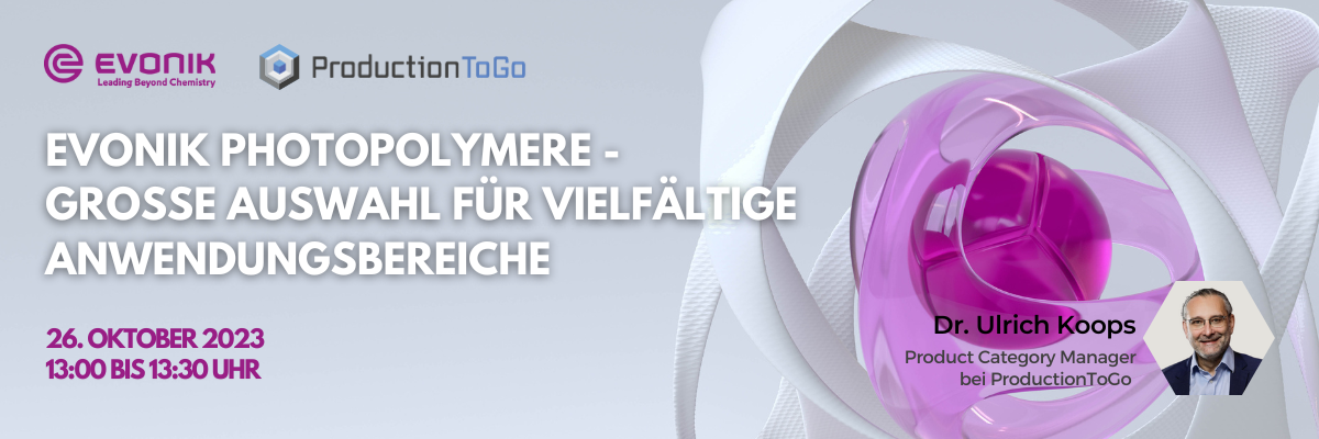 Die Auswahl von Evonik Photopolymeren ist zahlreich - alle mit ihren eigenen Vorzügen und Anwendungsbereichen. In diesem Webinar können Sie alles über die Unterschiede der verschiedenen INFINAM® Photopolymere und die idealen Anwendungsgebiete dieser lernen.