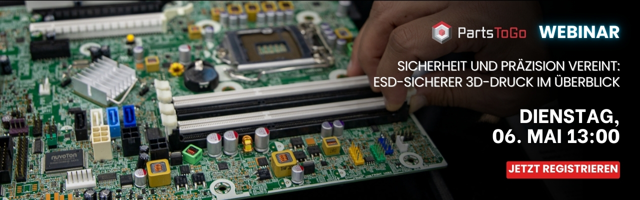 In diesem Webinar wird Ihnen Maximilian Neck, CEO der ProductionToGo und PartsToGo, einen tiefen Einblick in die Gründe dieses Paradigmenwechsels geben. Von den Vorteilen des 3D-Drucks über die besten Materialoptionen bis hin zu den idealen Anwendungsgebieten – hier erfahren Sie alles rund um den 3D-Druck von ESD-sicheren Bauteilen.